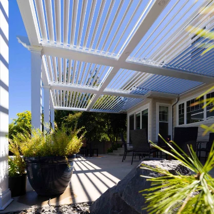 Pergola X, Pivot 6, White Frame with White Louver