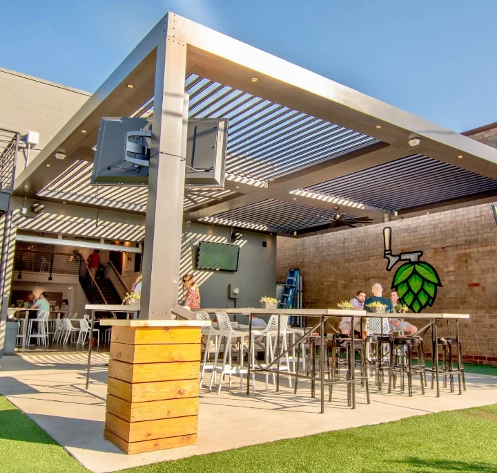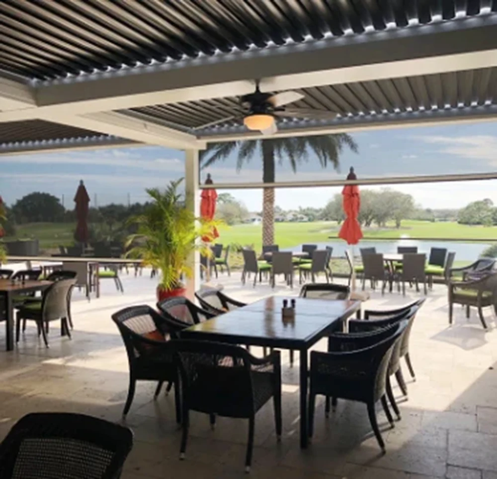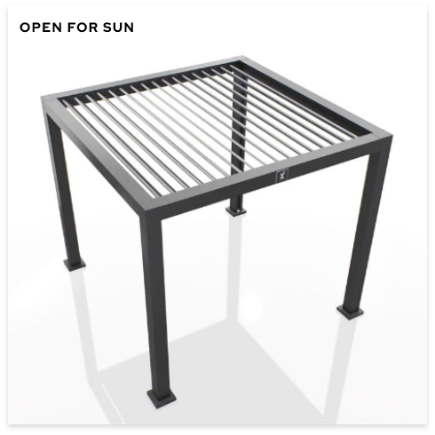 Pergola X was tailor-made for hosting your guests in style and luxury. Keep your patio open all year round… Louvers automatically close at the first drop of rain, so no more lost revenue due to bad weather.