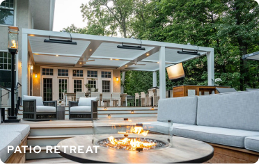 Control the elements. Add motorized screens, heaters and fans to make a climate controlled oasis. Enjoy the added benefits of privacy and shade while blocking pesky bugs and wind.