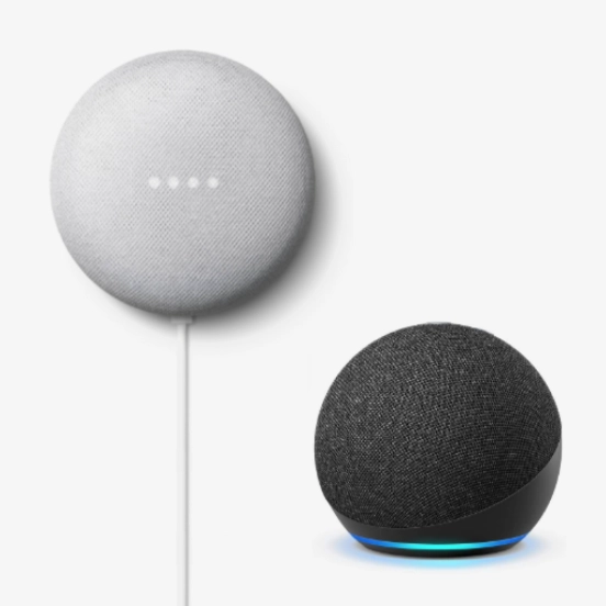 With Google Assist or Amazon Alexa.
